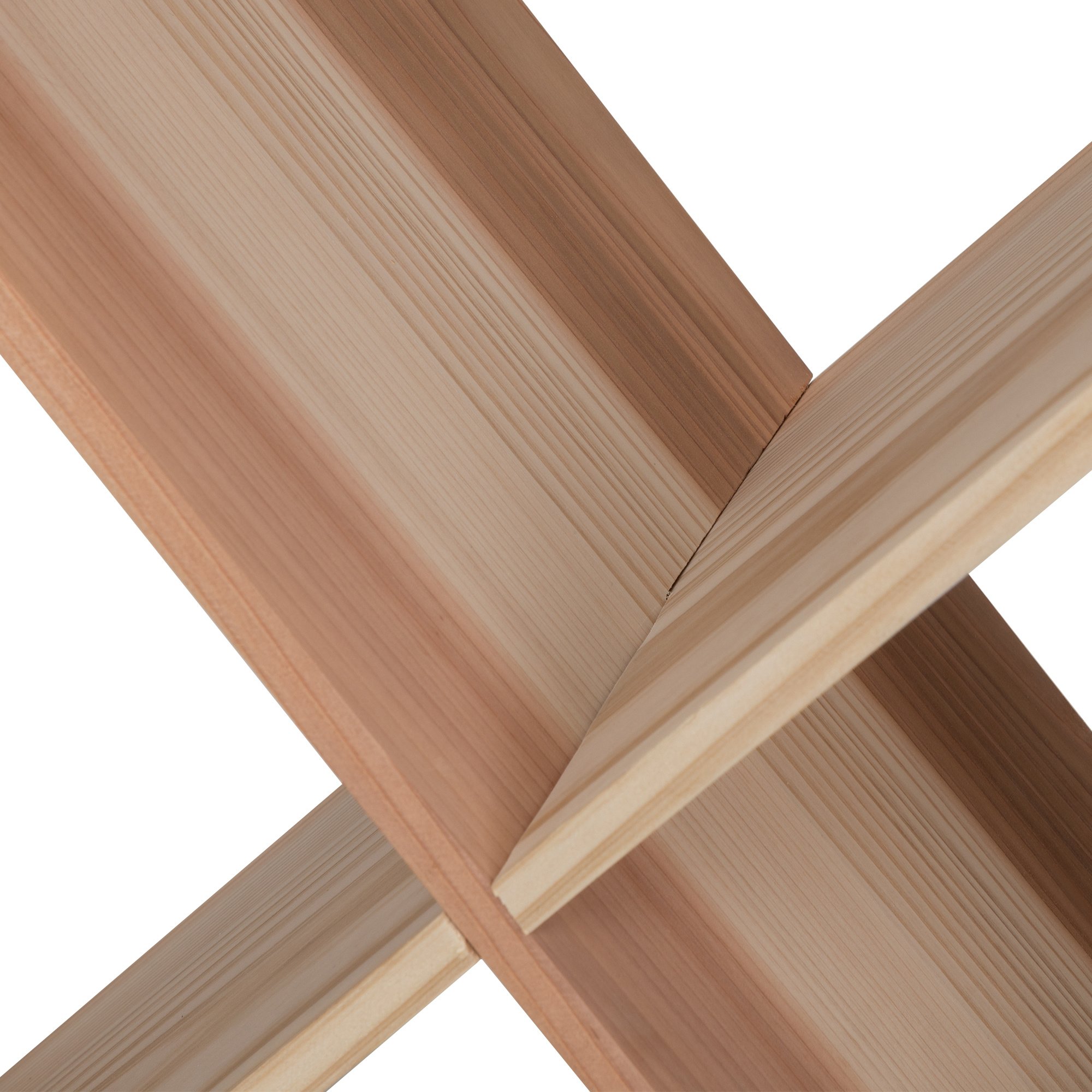 Set of 2 24 Bottle Wine Rack, Wine Storage Cube for Bar Kitchen Cellar, Wood Crate in NaturalFeatures:[Spacious Wine Storage Cube]: This wine rack with classic modular style that holds up to 24 bottles of each cube, with each separate compartment holding up to 6. This natural shelf offers an easy way to organize your favorite wine.[Safe and Sturdy Wood Material]: Crafted from sustainable and natural fir wood with smooth hand-sanded, the strong wood crate shows less blemishes and is built to last. This wine rack can support up to 66 lbs.[Modern and Stable Cabinet]: The X-shaped divider separates the interior into 4 sections while adding the standing stability of the whole structure and making your bar, kitchen, or cellar look more modern.[Stackable for More]: Compact cube shape is great for small spaces because you can stack 2 or more units high or side by side to expand your storage capacity. Combine freely as you like.[Easy to Assemble]: According to the step-by-step manual, you can install the wine rack easily. tags are included to record the origin, vintage, and other details.Specifications:Color: NaturalQuantity: 2Material: Fir WoodBoard Thickness: 0.47"Overall Dimensions (each): 19.69"L x 10.24"W x 19.69"HWeight Capacity: 66 lbsNet Weight: 14.55lbsQuantity of Tags: 20Note:1. The product comes with an English user manual